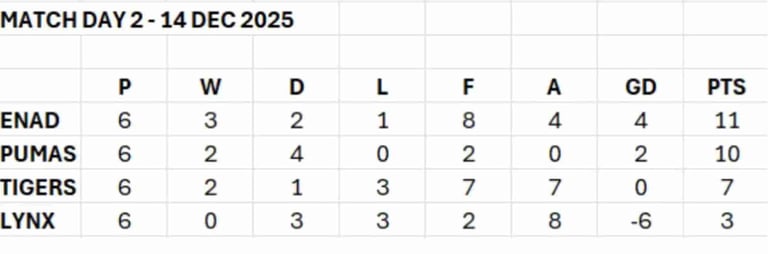 ENAD Panthers go top of league after WFiC League Matchday 2. See Fixtures & Results page (inc Manager's report) and Gallery & Video page. League table below: