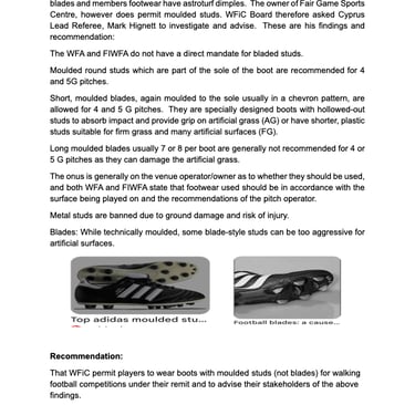 Moulded studs (not blades) now permissable in WFiC competitions i.e. our league. This does not apply to blades